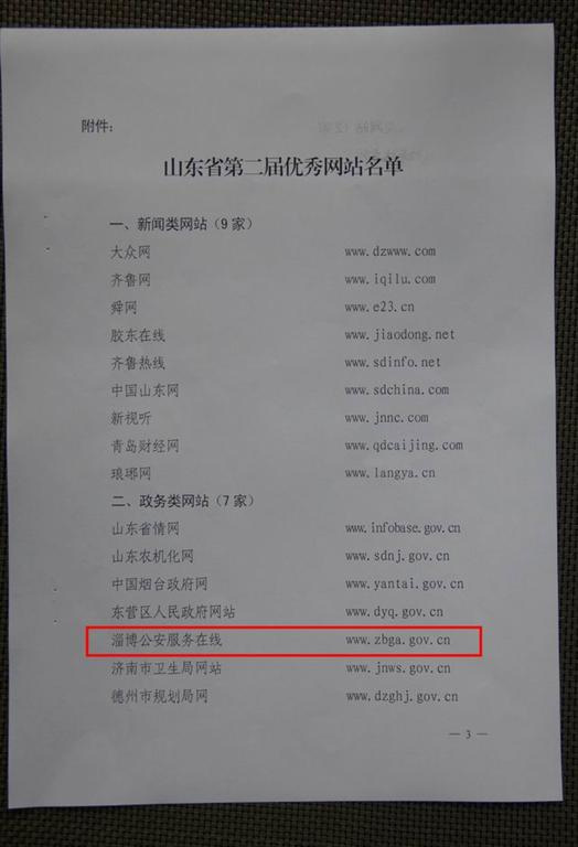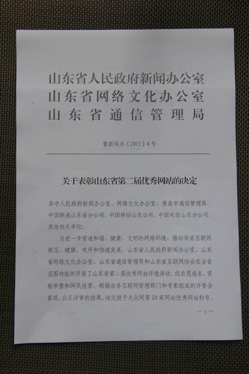 该网站在山东省第二届优秀网站评选活动中,被授予“山东省优秀网站”称号。